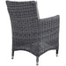 Experience the outdoors with exceptional comfort and quality. Summon Outdoor Patio Dining Arm Chair offers an exquisite two-tone synthetic rattan weave, plush all-weather cushions with industry-leading Sunbrella� fabric, UV protection, and a sturdy powder-coated aluminum frame. Featuring rounded arms and an elegant modern look, Summon Outdoor Arm Chair is part of an avant-garde outdoor sectional series well-equipped for enhancing patio, backyard, or poolside gatherings. This installment of the series is an Outdoor Patio Dining Arm Chair Set.