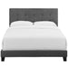 Inspire sweet dreams with a cozy Amira Performance Velvet Queen Platform Bed. Designed with chic elegance and contemporary style, Amira comes with a stain-resistant performance velvet fabric upholstered base, timeless button-tufted headboard, and wood bed frame and legs, with non-marking foot caps. Complete with a reinforced center beam for maximum stability, Amira Queen Platform Bed accommodates memory foam, spring, latex, and hybrid mattresses. A sleek and sophisticated centerpiece to the master bedroom or guest suite, this modern bed effortlessly transforms your bedroom decor with its luxe look. Box spring required (not included). Bed Weight Capacity: 800 lbs.