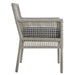 Weave conversational threads into a rollicking good time with Aura Outdoor Patio Dining Arm Chair. Aura is an outdoor dining chair that comes with a synthetic gray-on-gray tone wicker rattan weave and a powder-coated aluminum frame that delivers a softly versatile outdoor collection that shifts to meet the needs of the moment. Outfitted with a machine washable and fade resistant all-weather fabric cushion, Aura Patio Dining Chair will make your outdoor spot the focal point of good memories and festive gatherings while enhancing your patio, backyard or poolside arena. Complete with non-marking foot caps, enjoy spacious seating and enhanced comfort with this reliable piece of outdoor furniture.