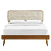 Infuse modern style into your master bedroom or guest room decor with the retro detail and organic aesthetics of the Bridgette Tufted Wood Queen Platform Bed. Inspired by mid-century style, the upholstered headboard on this queen bed frame features a classic button tufted design framed in rich wood grain. This platform bed frame is a sturdy addition to the bedroom with a durable wood, MDF, and veneer construction and splayed rubberwood legs. Eliminating the need for a box spring, this queen bed is complete with a wood slat support system, reinforced center beam, and supporting legs that make it a lasting mattress foundation for memory foam, latex, innerspring, and hybrid mattresses. Assembly required. Queen Bed Frame Weight Capacity: 601 lbs.