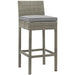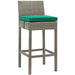 Refresh your alfresco space with the Conduit Outdoor Patio Bar Stool. Bringing transitional style with contemporary modern flair to any outdoor area, Conduit features a powder-coated aluminum frame wrapped in synthetic UV-resistant wicker rattan. Foam padded cushion and waterproof cover offer a comfortable seat while dining or entertaining. All-weather and long lasting, this versatile outdoor bar stool creates a serene setting for your morning tea, sunny lunch, sunset cocktail, and everything in between. Set Includes: Two - Conduit Outdoor Bar Stool Two - Convene Bar Stool Cushions Modern Outdoor Bar Stool Powder-Coated Aluminum Frame Synthetic PE Rattan Weave All-Weather Cushion Cover Water and UV Resistant Non-Marking Foot Pads Assembly Required Overall Bar Stool Dimensions: 18"L x 17.5"W x 39.5"H Bar Stool Dimensions: 16.5"L x 17.5"W Backrest Dimensions: 17.5"W x 12.5"H Cushion Dimensions: 18"L x 16.5"W x 2.5"H Overall Product Dimensions: 18"L x 36"W x 39.5"H