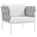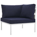 Engage life with Harmony Outdoor Patio Sectional Sofa Furniture Set. Enjoy casual conversation under the open sky with an all-weather waterproof furniture set that delivers an exceptional outdoor porch, patio, balcony or garden experience. An exceptional modern patio furniture set that exceeds expectations, this Harmony Outdoor Sectional set comes with long-lasting machine washable cushions, silk polyester seat back weave, square powder coated aluminum bases, tempered glass top tables, and non-marking foot caps. A sectional sofa that arranges according to the spontaneous needs of your guests, set your sights on open and inspired moments with the Harmony Outdoor Patio Collection.