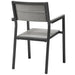 Bordered by the Atlantic Ocean rests the Maine Outdoor Patio Dining Furniture Collection. Distinguished by its synthetic wood grain plank boards, powder-coated aluminum frame, inspired design, and rich organic feel, Maine Outdoor Dining Set stands out as a versatile series for outdoor dining. This contemporary modern patio dining set is perfect for contemporary patios, backyards, poolside, and other outdoor lounge areas.