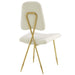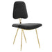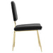 Survey your surroundings with confidence with the Ponder Dining Side Chair. Ponder�s padded high-density foam seat gently slopes upward providing embracing comfort while the tapered back provides ergonomic support. Finely upholstered in luxuriously soft velvet, and supported by a sturdy gold stainless steel frame with four angled mid-century toothpick legs, Ponder makes a striking statement. Accentuate your modern decor with a contemporary side chair that elevates any empty area of your home. Set Includes: Four - Ponder Dining Side Chair Chic Modern Dining Side Chair Upholstered In Stain-Resistant Velvet Polyester Dense Foam Padding Gold Stainless Steel Frame Weight Limit: 330 lbs. Assembly Required Overall Product Dimensions: 22"L x 19.5"W x 37"H Overall Side Chair Dimensions: 22"L x 19.5"W x 37"H Seat Dimensions: 20"L x 19.5"W x 19"H Backrest Dimensions: 13.5"L x 2"W x 17.5"H Base Dimensions: 20"L Cushion Thichkness: 2.5"H