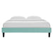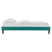 Transform your bedroom decor with the subtle glam deco style of the Reign Performance Velvet Queen Platform Bed Frame. Covered in soft, stain-resistant performance velvet, this upholstered bed boasts rich texture on the simple design of the sturdy side rails. Resting atop tapered black wood legs, the queen size bed frame is a sturdy mattress foundation for memory foam, latex, innerspring, and hybrid mattresses. Eliminating the need for a box spring, this platform bed is complete with a poplar wood slat support system, a reinforced center beam, and supporting legs for lasting stability. Compatible with a variety of queen headboard designs, this queen platform bed also makes a striking statement as a stand-alone piece in the master bedroom or guest bedroom. Mattress not included. Assembly required. Queen Bed Frame Weight Capacity: 800 lbs. Set Includes: One - Reign Queen Platform Bed Frame Upholstered Queen Platform Bed Frame Stain-Resistant Performance Velvet Wood Slat Support System Reinforced Center Beam and Support Legs Black Wood Legs Assembly Required Bed Frame Weight Capacity: 800 lbs. Overall Product Dimensions: 82"L x 63.5"W x 12"H Headboard Dimensions: 0.5"L x 63.5"W x 12"H Side Rail Dimensions: 81"L x 62.5"W x 12"H Footboard Dimensions: 0.5"L x 63.5"W x 12"H
