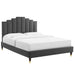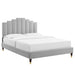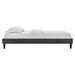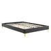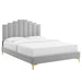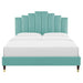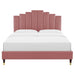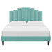 Refresh a kid's bedroom or guest suite with the luxurious style of the Elise Performance Velvet Twin Platform Bed. Abounding in glam deco style, the twin headboard of this platform bed features a modern twist on classic channel tufting with velvety panels ascending upwards in an arching design. Resting atop wood legs with gold metal sleeves, this upholstered bed is covered in soft, stain-resistant performance velvet and dense foam padding. This twin size bed is a sturdy mattress foundation for memory foam, innerspring, latex, and hybrid mattresses. With supporting legs and a reinforced center beam, this upholstered bed is complete with a poplar wood slat support system that offers lasting stability. Assembly required. Twin Bed Weight Capacity: 800 lbs.