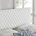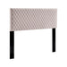 Customize your bedroom space with the Angela Tufted Diamond Lattice Performance Velvet Upholstered Twin Headboard. The elegant textured diamond pattern combines with the soft and stain-resistant performance velvet upholstery for a standout headboard for twin beds. The Angela Twin Headboard is height adjustable with three mounting positions. Solidly constructed from wood and plywood, dense foam padding supports this twin headboard for a comfortable experience reading, reclining, or conversing in bed. Set Includes: One - Angela Twin Headboard Diamond Lattice Pattern Performance Velvet Upholstery Height Adjustable Twin Headboard Sturdy Construction Dense Foam Padding Textured Tufted Details Overall Product Dimensions: 3"L x 39"W x 22.5"H Floor to Top of Headboard: 42 - 50"H Floor to Bottom of Headboard: 19.5 - 27.5"H