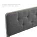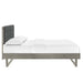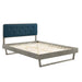 Infuse modern style into your master bedroom or guest room decor with the retro detail and organic aesthetics of the Bridgette Tufted Wood King Platform Bed. Inspired by mid-century style, the upholstered headboard on this king bed frame features a classic button tufted design framed in rich wood grain. This platform bed frame is a sturdy addition to the bedroom with a durable wood, MDF, and veneer construction and an angular rubberwood frame. Eliminating the need for a box spring, this king bed is complete with a wood slat support system, reinforced center beam, and supporting legs that make it a lasting mattress foundation for memory foam, latex, innerspring, and hybrid mattresses. Assembly required. King Bed Frame Weight Capacity: 601 lbs.