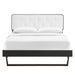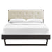 Infuse modern style into your master bedroom or guest room decor with the retro detail and organic aesthetics of the Bridgette Tufted Wood Queen Platform Bed. Inspired by mid-century style, the upholstered headboard on this queen bed frame features a classic button tufted design framed in rich wood grain. This platform bed frame is a sturdy addition to the bedroom with a durable wood, MDF, and veneer construction and an angular rubberwood frame. Eliminating the need for a box spring, this queen bed is complete with a wood slat support system, reinforced center beam, and supporting legs that make it a lasting mattress foundation for memory foam, latex, innerspring, and hybrid mattresses. Assembly required. Queen Bed Frame Weight Capacity: 601 lbs.