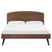Influence master bedroom or guest bedroom decor with the mid-century style of the Bronwen Wood Queen Platform Bed. Featuring a simple arching queen headboard, this wood bed frame is rich in modern style and organic aesthetics with its beautiful wood grain. Creating a lasting mattress foundation for memory foam, innerspring, hybrid, and latex mattresses, this headboard is crafted with solid rubberwood and MDF with wood grain veneer. A LVL wood slat support system complete with a reinforced center beam and support legs eliminates the need for a box spring and allows for healthy air circulation. Assembly required. Mattress not included. Bed Weight Capacity: 601 lbs.