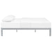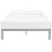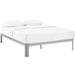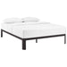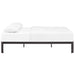 Transform your bedroom with the Corinne Bed Frame. With a slatted wood support system and sturdy steel frame, Corinne eliminates the need for a boxspring and firmly supports the various mattress types on the market such as memory foam, spring, latex, and hybrid. Featuring a sleek design with non-marking foot pads, plus a reinforced center beam with extra support legs, Corinne is a solidly built bed that superbly serves the diverse needs of the modern home. Corinne holds a weight capacity of up to 1300 lbs. Mattress Not Included. Set Includes: One - Corinne Queen Bed Frame Modern Platform Bed Frame Sturdy Powder Coated Steel Frame Slatted Poplar Wood Support System Weight Capacity Up To 1300 lbs Non-Marking Foot Pads Assembly Required Overall Product Dimensions: 80"L x 60"W x 12.5"H Distance Between Slats: 3.4"W