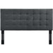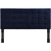 Enjoy simple elegance with the square-patterned design of Paisley. Featuring timeless biscuit tufting, Paisley updates the kid room, dorm, or guest bedroom with charming appeal. A stylish full or queen headboard, Paisley is made of soft, stain resistant performance velvet covering a durable fiberboard and plywood frame with dense foam padding. Solidly constructed with extra wide black-stained wood post legs that fit twin bed frames, choose from three mounting positions with this tall, padded headboard that ranges from 46 - 54 inches in height. The Paisley twin headboard is a lavish addition that offers quality support while reclining and relaxing. Set Includes: One - Paisley Tufted Twin Headboard Elegant Biscuit Tufted Design Twin Size Headboard Soft Performance Velvet Upholstery Fiberboard and Plywood Frame Three Mounting Position Heights Sturdy Wood Post Legs Black-Stained Poplar Wood Posts Overall Product Dimensions: 3"L x 43.5"W x 46 - 54"H Bottom to Top of Headboard: 26.5"H Floor to Top of Headboard: 46 - 54"H Floor to Bottom of Headboard: 19.5 - 27.5"H