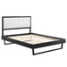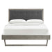 Refresh your master bedroom or guest room with the modern style, retro detail, and organic aesthetics of the Willow Tufted Wood Twin Platform Bed. Inspired by mid-century style, the upholstered headboard of this twin bed frame features a beautiful wood frame that encases a button tufted design. This platform bed frame is a sturdy addition to the bedroom with a durable wood, MDF, and veneer construction and an angular rubberwood frame. Eliminating the need for a box spring, this twin bed is complete with a wood slat support system, reinforced center beam, and supporting legs that make it a lasting mattress foundation for memory foam, latex, innerspring, and hybrid mattresses. Assembly required. Twin Bed Frame Weight Capacity: 601 lbs.