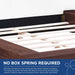 Instantly transform your bedroom landscape with the Freja Platform Bed. Designed with clean straight lines and a compelling aesthetic, Freja features a sturdy laminated particleboard base with cappuccino veneer, foam-padded headboard upholstered in Vinyl, slatted support that eliminates the need for a box spring, and a reinforced center beam with supporting legs for maximal stability. Update your bedroom d�cor with an engaging platform bed which evinces a refined look and striking design. Freja admirably supports mattress types such as memory foam, spring, latex, and hybrid. Mattress Not Included.