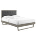 Refresh your master bedroom or guest room with the modern style, retro detail, and organic aesthetics of the Willow Tufted Wood Queen Platform Bed. Inspired by mid-century style, the upholstered headboard of this queen bed frame features a beautiful wood frame that encases a button tufted design. This platform bed frame is a sturdy addition to the bedroom with a durable wood, MDF, and veneer construction and an angular rubberwood frame. Eliminating the need for a box spring, this queen bed is complete with a wood slat support system, reinforced center beam, and supporting legs that make it a lasting mattress foundation for memory foam, latex, innerspring, and hybrid mattresses. Assembly required. Queen Bed Frame Weight Capacity: 601 lbs.