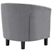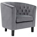 Intrinsically luxurious, Prospect is a throwback to the classic Chesterfield design, while delivering an engaging modern look filled with passion and drive. Button tufting and sweeping curves blend to form a contemporary lounge piece that all will be drawn to. This cozy armchair with espresso stained wood legs and non-marking foot caps features comfortable foam padding and soft, stain-resistant performance velvet polyester upholstery. Set Includes: One - Prospect Armchair Chesterfield Style Armchair Performance Velvet Upholstery Espresso Stained Wood Legs Dense Foam Padding for Comfort Deep Button Tufting Non-Marking Foot Caps Assembly Required Overall Product Dimensions: 30.5"L x 28.5"W x 29.5"H Seat Dimensions: 22"L x 20.5"W x 17"H Floor to Top of Armrest: 25.5"H Backrest Dimensions: 4"L x 12.5"H Cushion Thichkness: 4.5"H Armrest Width: 4"W