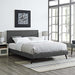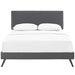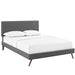 Accelerate your bedroom decor with the Macie Platform Bed. Made with a solid wood frame upholstered in polyester fabric, Macie features tapered wood legs, plastic foot glides, stylish headboard, and ten sturdy wood slats with a centered supporting bar and two support legs for enhanced stability. Due to the wooden slat support system, the use of a box spring is unnecessary. Macie supports memory foam mattresses such as our Aveline series. Perfect for mid-century modern, minimalist and contemporary bedrooms. Mattress not included. Assembly Required.