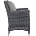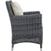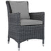 Experience the outdoors with exceptional comfort and quality. Summon Outdoor Patio Dining Arm Chair offers an exquisite two-tone synthetic rattan weave, plush all-weather cushions with industry-leading Sunbrella� fabric, UV protection, and a sturdy powder-coated aluminum frame. Featuring rounded arms and an elegant modern look, Summon Outdoor Arm Chair is part of an avant-garde outdoor sectional series well-equipped for enhancing patio, backyard, or poolside gatherings. This installment of the series is an Outdoor Patio Dining Arm Chair Set. Set Includes: Two - Summon Dining Armchair Long Lasting Sunbrella� Fabric Synthetic Rattan Weave Powder Coated Aluminum Frame Water & UV Resistant Ships Pre-Assembled Overall Armchair Dimensions: 26.5"L x 25"W x 35"H Seat Dimensions: 20"L x 18.5"W x 18.5"H Armrest Dimensions: 25.5"H Backrest Dimensions: 16.5"H Armrest Height from Seat: 9"H Base Dimensions: 23.5"L x 21.5"W Overall Product Dimensions: 26.5"L x 50"W x 35"H