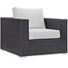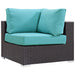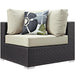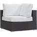 Gather stages of sensitivity with the Convene Outdoor Sectional series. Made with a synthetic rattan weave and a powder-coated aluminum frame, Convene is a versatile outdoor furniture set that shifts and combines according to the spontaneous needs of the moment. Outfitted with all-weather fabric cushions, leave a positive impression on friends and family while enhancing your patio, backyard, or poolside repast in this series of palpable distinction. This installment of the series is an Outdoor Patio Sectional Sofa Set.