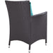 Gather stages of sensitivity with the Convene Outdoor Sectional series. Made with a synthetic rattan weave and a powder-coated aluminum frame, Convene is a versatile outdoor collection that shifts and combines according to the spontaneous needs of the moment. Outfitted with all-weather fabric cushions, leave a positive impression on friends and family while enhancing your patio, backyard, or poolside repast in this series of palpable distinction. This installment of the series is an Outdoor Patio Dining Table and Arm Chair Set.