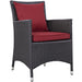 Gather stages of sensitivity with the Convene Outdoor Sectional series. Made with a synthetic rattan weave and a powder-coated aluminum frame, Convene is a versatile outdoor dining arm chair that shifts and combines according to the spontaneous needs of the moment. Outfitted with all-weather fabric cushions, leave a positive impression on friends and family while enhancing your patio, backyard, or poolside repast in this series of palpable distinction. This installment of the series is an Outdoor Patio Dining Arm Chair.