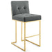 Maximize your dining room decor with Privy Bar Stool Set of 2. A glam deco bar stool, Privy features soft and durable fabric upholstery for a streamlined modern look. This stylish bar stool rests atop a sleek gold stainless steel geometric base with a footrest that will elevate your bar and dining experience. No assembly required. Bar Stool Weight Capacity: 331 lbs