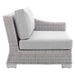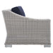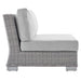 Enjoy fresh air and alfresco relaxation with the Conway Outdoor Patio Sunbrella� Wicker Rattan 6-Piece Furniture Set. Wrapped in UV-resistant light gray synthetic wicker rattan, this patio furniture set boasts organic texture and a neutral hue that brings a calming presence to your outdoor space. The frame of this outdoor furniture set and outdoor ottoman are crafted with durable powder-coated aluminum and rest on L-shaped legs with plastic foot glides. Thick foam padded cushions covered with washable water-resistant Sunbrella� covers offer a comfortable seat and affix securely to the lounge chair with cord tension attachments. Trending aesthetics and a classic design define this outdoor patio furniture collection making it a beautiful addition to any outdoor space including the backyard, patio, porch, balcony, or poolside. Assembly required. Set Includes: Left-Arm Chair, Right-Arm Chair, 2 Armless Chairs, 2 Ottomans Set Includes: One - Conway Sunbrella� Left-Arm Chair One - Conway Sunbrella� Right-Arm Chair Two - Conway Sunbrella� Armless Chair Two - Conway Sunbrella� Ottoman 6-Piece Outdoor Patio Furniture Set Water and UV Resistant Light Gray Synthetic Rattan Powder-Coated Aluminum Frame Washable Sunbrella� Cushion Covers Non-Marking Foot Glides Overall Product Dimensions: 58"L x 130"W x 28"H Overall Left and Right Arm Chair Dimensions: 36"L x 35"W x 28"H Seat Dimensions: 29.5"L x 34.5"W x 15"H Armrest Dimensions: 29.5"L x 5"W x 21"H Backrest Dimensions: 6.5"L x 35"W x 12"H Base Dimensions: 34"L x 34.5"W Overall Armless Chair: 36"L x 30"W x 28"H Seat Dimensions: 22.5"L x 30"W x 15"H Backrest Dimensions: 10"L x 30"W x 12"H Overall Ottoman Dimensions: 22"L x 32"W x 15"H Seat Dimensions: 22"L x 32"W x 15"H Cushion Thichkness: 5"H Leg Dimensions: 2"H