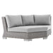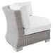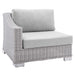 Enjoy fresh air and alfresco relaxation with the Conway Outdoor Patio Sunbrella� Wicker Rattan 6-Piece Sectional Sofa Furniture Set. Wrapped in UV-resistant light gray synthetic wicker rattan, this outdoor sectional sofa boasts organic texture and a neutral hue that brings a calming presence to your outdoor area with a modular design that adapts to variety of configurations to suit your space. The frames of this outdoor sofa set are crafted with durable powder-coated aluminum and rest on L-shaped legs with plastic foot glides. Thick foam padded cushions covered with washable water-resistant Sunbrella� covers offer a comfortable seat and affix securely to the patio sofa with cord tension attachments. Trending aesthetics and a classic design define this outdoor patio furniture collection making it a beautiful addition to any outdoor space including the backyard, patio, porch, balcony, or poolside. Assembly required. Set Includes: Left-Arm Chair, Right-Arm Chair, Corner Chair, 2 Armless Chairs, Coffee Table