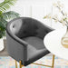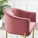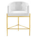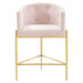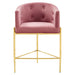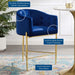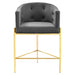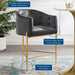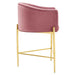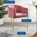 Bring luxe elegance to your dining room or kitchen space with the Savour Tufted Performance Velvet Counter Stool. Featuring a sweeping silhouette and updated club chair design, this velvet stool is suited for a counter-height pub table or kitchen island. This counter-height bar stool is upholstered in stain-resistant performance velvet upholstery and features dense foam padding to offer a comfortable seat while dining. Resting on a chrome gold tubular stainless steel frame, this versatile counter stool has interior button tufting and a charming curved shape. Seat Height From Floor: 26"H; Counter Bar Stool Weight Capacity: 300 lbs.