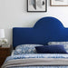 Awaken a guest bedroom, kid's room, or college dorm with the energizing style of the Dawn Performance Velvet Twin Headboard. Featuring an arching silhouette reminiscent of the morning sunrise, this upholstered headboard is covered in stain-resistant performance velvet that offers luxe texture and a glam deco look. This twin size headboard is padded with dense foam creating a soft, supportive place to rest and relax while sitting up in bed. With a sturdy construction and adjustable height, this velvet headboard features five mounting positions to fit almost any twin bed frame. Assembly required. Set Includes: One - Dawn Twin Headboard Velvet Twin Headboard Performance Velvet Upholstery Dense Foam Padding 5 Mounting Positions Plywood and MDF Construction Assembly Required Overall Product Dimensions: 2.5"L x 39"W x 26"H Floor to Top of Headboard: 49.5 - 53.5"H Floor to Bottom of Headboard: 23.5 - 30.5"H