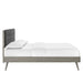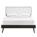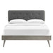 Infuse modern style into your master bedroom or guest room decor with the retro detail and organic aesthetics of the Bridgette Tufted Wood Twin Platform Bed. Inspired by mid-century style, the upholstered headboard on this twin bed frame features a classic button tufted design framed in rich wood grain. This platform bed frame is a sturdy addition to the bedroom with a durable wood, MDF, and veneer construction and splayed rubberwood legs. Eliminating the need for a box spring, this twin bed is complete with a wood slat support system, reinforced center beam, and supporting legs that make it a lasting mattress foundation for memory foam, latex, innerspring, and hybrid mattresses. Assembly required. Twin Bed Frame Weight Capacity: 601 lbs.