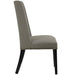 Explore the vast riches of a treasured heritage with the Baron Dining Chair. Designed to resonate elegance, Barons features a charming back and polished nailhead trimmed seat with a dash of grace and noble appeal. Complete with dense foam padding, fine fabric upholstery, solid wood frame and legs with non-marking foot glides, Baron is a stylish dining chair perfect for the modern home.