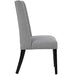 Explore the vast riches of a treasured heritage with the Baron Dining Chair. Designed to resonate elegance, Barons features a charming back and polished nailhead trimmed seat with a dash of grace and noble appeal. Complete with dense foam padding, fine fabric upholstery, solid wood frame and legs with non-marking foot glides, Baron is a stylish dining chair perfect for the modern home.