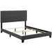Inspire sweet dreams with a cozy queen bed. Designed with chic elegance and contemporary style, Amira comes with a soft polyester fabric upholstered base, timeless button-tufted headboard, and wood bed frame and legs, with non-marking foot caps. Complete with a reinforced center beam for maximum stability, Amira accommodates memory foam, spring, latex, and hybrid mattresses. A sleek and sophisticated centerpiece to the master bedroom or guest suite, this modern bed effortlessly transforms your bedroom decor with its luxe look. Box spring required (not included). Bed Weight Capacity: 800 lbs. Set Includes: One - Amira Queen Bed Platform Bed Frame With Headboard Upholstered In Polyester Fabric Padded Button-Tufted Headboard Wood Frame / LVL Slats / MDF Headboard Box Spring Required (Not Included) Non-Marking Foot Caps Bed Weight Capacity: 800 lbs. Overall Product Dimensions: 84.5"L x 64.5"W x 45.5"H Headboard Dimensions: 3.5"L x 64.5"W x 24.5"H Floor to Bottom of Headboard: 21"H Floor to Top of Headboard: 45.5"H Footboard Dimensions: 2"L x 62"W x 6"H Side Rail Dimensions: 82"L x 62"W x 6"H