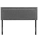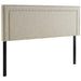 Adorn your bed of choice with the elegantly designed Modway Jessamine Fabric Upholstered King Headboard. Designed with two rows of silver-accented nail button trim, Jessamine King Headboard comes finely upholstered with soft linen fabric, has a solid wood frame, adjustable wood legs, and dense foam padding for ultimate support. Rejoice with a contemporary design that admirably complements your bedroom d�cor and fits most King beds. Set Includes: One - Jessamine King Headboard Fine Polyester Upholstery Silver Accent Copper Buttons Solid Wood Frame Particleboard Panel Dense Foam Padding Mounts in Four Locations Assembly Required Overall Product Dimensions: 3"L x 79.5"W x 40 - 47.5"H