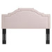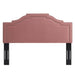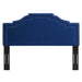 Influence glam deco style in a master bedroom or guest suite with the Lucia Performance Velvet King/California King Headboard. Featuring a double trim of nailheads and a unique arched shape, this velvet headboard brings tactile luxury to the bedroom. Covered in soft, stain-resistant performance velvet, this king/Cali king size headboard is padded in dense foam offering a supportive place to rest while sitting up in bed. A backdrop for a variety of bedding and sham styles, this height-adjustable headboard fits king or California king size bed frames with its three mounting positions. Assembly required. Set Includes: One - Lucia King/California King Headboard King/California King Size Headboard Performance Velvet Upholstery Durable Stain-Resistant Fabric Nailhead Trim Dense Foam Padding 3 Mounting Positions Assembly Required Overall Product Dimensions: 2.5"L x 78.5"W x 26"H Floor to Top of Headboard: 49.5 - 53.5"H Floor to Bottom of Headboard: 23.5 - 27.5"H