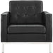 The mid-20th century was a time when hopes were at their highest. Technological developments were bustling forward, and the new world was just barely visible in the distance. But this time also presented a dilemma of sorts. The test of this forthcoming era was to be whether industry would foster comfort or stifle it. What makes the Loft series so complete? At first glance, it displays a pleasant linear design with an external tubular stainless steel frame. The back and seat are tufted and buttoned to enhance the overall richness of the piece. But can these aspects be said to define the totality of a classic? The answer then must be something profound. A thought that serves as representative of that era, while matching the sentiments of our present age. Our suggestion is that the Loft series conveys the potential of progress. From amidst the steel base, a comfortable seating experience is attained. From out of the exponential surge of technological growth, comes peace and solace. Perhaps this is why Loft is the sofa series of choice for so many Fortune 500 companies. Aside from its iconic feel, the set is symbolic of a time when technological innovation could do no wrong. When �faster� was seen only as something positive. The Loft series is the preferred choice for reception areas, living rooms, hotels, resorts, restaurants, and other lounge spaces. Set Includes: One - Loft Armchair Mid-Century Modern Armchair Top Grain Genuine Leather Tufted Seat and Back with Buttons Stainless Steel Frame Generously padded foam cushions Foot caps to prevent scratching Overall Product Dimensions: 30.5"L x 30.5"W x 30.5"H Seat Dimensions: 23"L x 24"W x 16"H Armrest Dimensions: 4"W x 23"H Backrest Height: 14.5"H Cushion Thickness: 4"H Armrest Height from Seat: 7"H