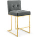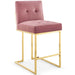 Maximize your dining room decor with Privy Counter Stool Set of 2. A glam deco kitchen counter stool, Privy features soft and stain-resistant performance velvet upholstery for a streamlined modern look. This counter height stool rests atop a sleek gold stainless steel geometric base with a footrest that will elevate your dining experience. No assembly required. Counter Stool Weight Capacity: 331 lbs Set Includes: Two - Privy Gold Stainless Steel Counter Stool Glam Deco Kitchen Counter Stool Set of 2 Soft Polyester Fabric Upholstery Gold Stainless Steel Geometric Base Elegant Biscuit Tufting Non-Marking Foot Caps No Assembly Required Counter Stool Weight Capacity: 331 lbs Overall Product Dimensions: 19"L x 47"W x 36.5"H Individual Stool Dimensions: 19"L x 23.5"W x 36.5"H Backrest Dimensions: 3.5"L x 19"W x 12"H Base Dimensions: 23.5"L x 18"W