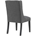 Bestow splendor with Baronet. Charm and elegance adorn this luxurious button tufted dining chair complete with sleek curves and dignified form. Featuring dense foam padding, fine fabric upholstery, a solid wood frame, and non-marking foot glides, Baronet is a stylish dining chair perfect for the modern home.