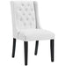 Bestow splendor with Baronet. Charm and elegance adorn this luxurious button tufted dining chair complete with sleek curves and dignified form. Featuring dense foam padding, fine vinyl upholstery, a solid wood frame, and non-marking foot glides, Baronet is a stylish dining chair perfect for the modern home. Set Includes: One - Baronet Dining Chair Elegant Modern Dining Side Chair Dense Foam Padding for Comfort Solid Rubberwood Legs Non-Marking Foot Caps Fine Vinyl Upholstery Chair Weight Capacity: 286 lbs Assembly Required Overall Product Dimensions: 21"L x 25"W x 38.5"H Seat Dimensions: 18"L x 21"W x 19.5"H Backrest Dimensions: 19"W x 19.5"H Cushion Thichkness: 4"H Leg Dimensions: 1.5"L x 1.5"W x 14.5"H Base Dimension: 20"L x 22"W