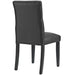 Bestow elegance with the Duchess Dining Chair. Chic and luxurious, Duchess features a stylish curvy form, richly tufted button back, dense foam padding, fine vinyl upholstery, and wood legs topped with non-marking foot caps. Resonate grace and charm with a dining chair perfect for the modern home. Set Includes: Four - Duchess Dining Chair Dense Foam Padding for Comfort Luxuriously Tufted Button Back Solid Rubberwood Legs Non-Marking Foot Caps Fine Vinyl Upholstery Chair Weight Capacity: 286 lbs Assembly Required Overall Product Dimensions: 24.5"L x 18.5"W x 37.5"H Overall Dining Chair Dimensions: 24.5"L x 18.5"W x 37.5"H Seat Dimensions: 17.5"L x 18.5"W x 21"H Backrest Thickness: 3"W