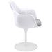 The Lippa Armchair adds the perfect modern classic touch to any dining space. Sturdy, easy to clean and lovely to behold, these chairs elevate a meal to whole new levels of enjoyment. Available in an array of colors, the Lippa Chair makes it easy to express your individual style. Set Includes: One - Lippa Armchair ABS Plastic Seat Aluminum Base Cloth Cushions Chair Swivels 360� Overall Product Dimensions: 24"L x 26.5"W x 33.5"H Seat Dimensions: 19.5"L x 21"W x 20.5"H Cushion Thickness: 4"H Backrest Dimensions: 13"H Armrest Height: 6"H