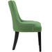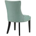 Inspire your d�cor with the Marquis Dining Side Chair. Marquis is fashioned with a chic hourglass shaped back, studded nailhead trim, non-marking foot caps, tapered wood legs, and a regal seat generously padded in foam and upholstered in polyester fabric. Marquis works well in both modern and traditional dining rooms. Set Includes: One - Marquis Dining Chair Solid Wood Frame Black Rubberwood Legs Dense Foam Padding for Comfort Studded Nailhead Trim Elegant Tapered Legs Non-Marking Foot Caps Assembly Required Overall Product Dimensions: 25"L x 22"W x 36"H Seat Dimensions: 17.5"L x 22"W x 20.5"H Armrest Height: 6"H Armrest Width: 2.5"W Backrest Dimensions: 19"L x 3"W x 15.5"H