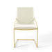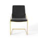 Freely flowing angles form the understated elegance of the Pitch Performance Velvet Upholstered Dining Armchair. The Pitch Dining Chair has a geometric gold stainless steel frame with non-marking foot caps, and a foam padded plywood seat. Covered in soft and stain-resistant performance velvet upholstery, the Pitch Accent Chair embraces open space for a notable modern chair that stands out amongst your dining room decor. Chair Weight Capacity: 330 lbs.