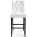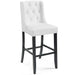 Bestow splendor with the Baronet Tufted Button Faux Leather Upholstered Bar Stool. Featuring dense foam padding, sinuous spring support, and smooth faux leather upholstery, enjoy a luxe seating experience with this luxurious tufted button bar stool. Complete with sleek curves and dignified form, this modern bar stool with solid wood legs with stretcher supports and non-marking foot caps is the perfect choice for the home bar seating area. Bar Stool Weight Capacity: 500 lbs.