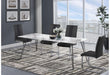 This unique designed dining table has a marble style look but is a marble image under glass. This gives you the look of marble but the maintenance of glass. That combination is perfect for high usage with longevity. The metal legs add stability and style. You can enjoy this in any home with any atmosphere.