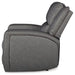 This recliner appeals to your love for feature-filled furniture, all while maintaining a clean-lined and contemporary design. Pop-out storage and cup holders keep essentials close when you need them and tuck away easily when you don’t. Time to recline? A subtly placed handle extends the footrest with a simple pull. The sleekest of seating options, this recliner expertly balances form and function.