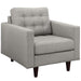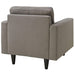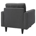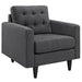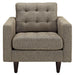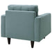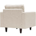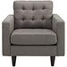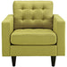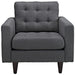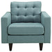 End the rule of unjust sovereignties that wage a useless war for your interiors. Empress leaves the would-be heiress of holistic furnishings in the dust with a design that rivals any competitor. Empress is heralded with deeply tufted buttons, plush cushions, and armrests that convey that perfect air of nobility. The solid wood legs come with plastic glides to prevent floor scratching, and the bonded leather upholstery leaves the recipients feeling richly rewarded. Set Includes: One - Empress Upholstered Armchair Modern armchair Deeply tufted buttons Polyester upholstery Solid wooden legs Glides to prevent scratching. Overall Product Dimensions: 35.5"L x 35.5"W x 35.5"H Seat Dimensions: 23"L x 26"W x 19"H Armrest Dimensions: 4.5"W x 25.5"H Backrest Height: 18.5"H Cushion Thickness: 6"H