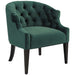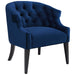 Redefine luxury lounge with the rich artistry of Precept Accent Armchair. Precept's deep button tufting covers the surrounding embrace of a curved back and vintage silhouette. Soft, stain-resistant performance velvet upholstery covers dense foam padding to produce a premium seating experience that enhances any room. Precept's diamond tufted pattern adds visual depth to this plush velvet accent chair perfect for your living room, bedroom, entryway, lounge room or waiting area. Seated atop four tapered birch wood legs with non-marking foot caps, Precept enhances the glamour of any home.