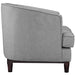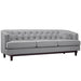 Sale the tide of elegance with Coast. Buoyed with exquisite deep button tufting and fine trim, Coast comes upholstered in polyester with a walnut stained wood leg base with non-marking foot glides. Solidly made with exceptional support, Coast features dense foam cushioning, removable seat covers for easy cleaning and generous seating space. Combining mid-century style with ageless nobility, the Coast Living Room Set is perfect for modern and eclectic living rooms, lounge spaces, and reception areas.